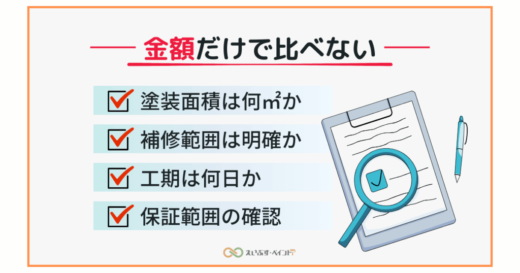▶ 写真・劣化説明・補修範囲の明記があるか確認してみてください。