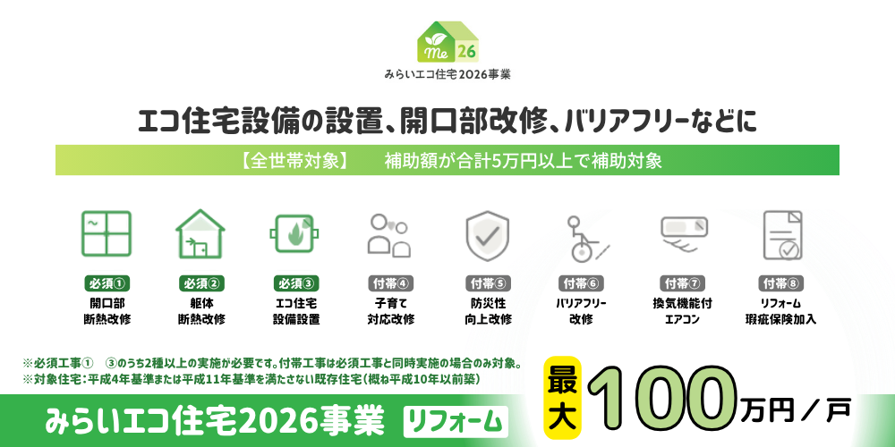 - みらいエコ住宅2026事業(リフォーム部門)