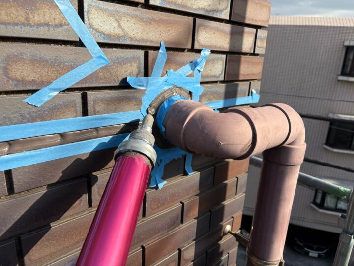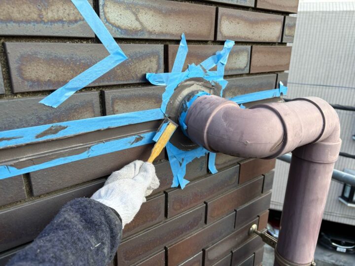 ケレン・清掃を行い、外壁に付着した汚れやゴミなどを取り除きます。 -