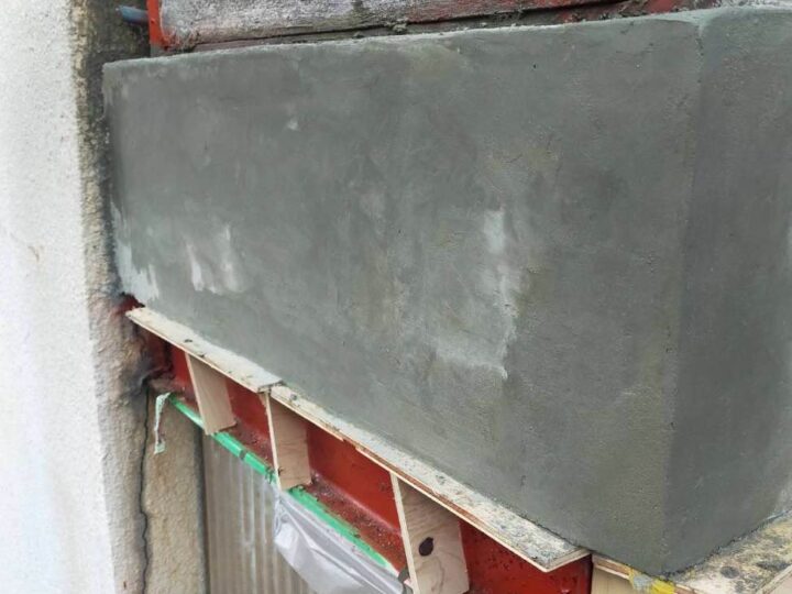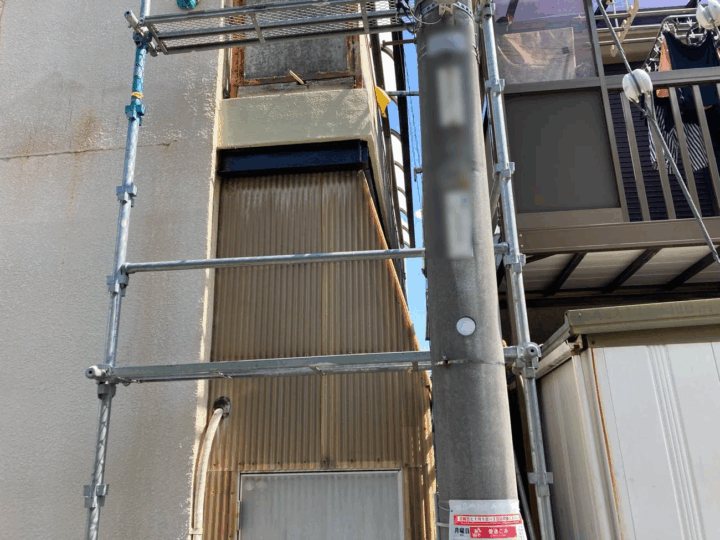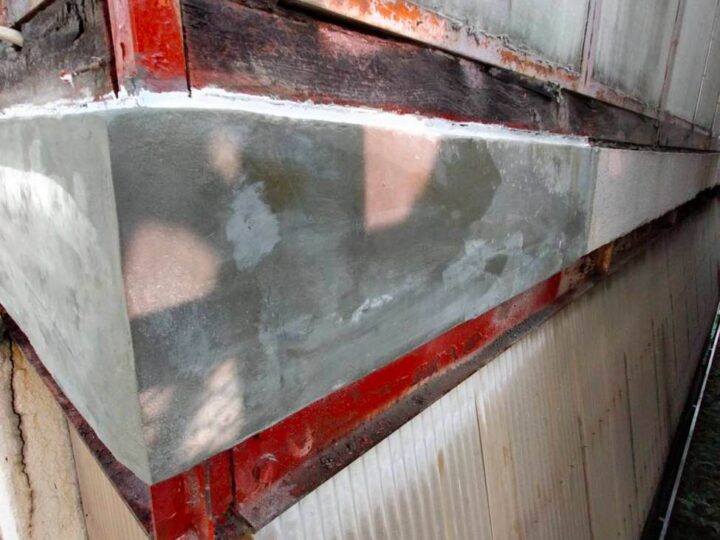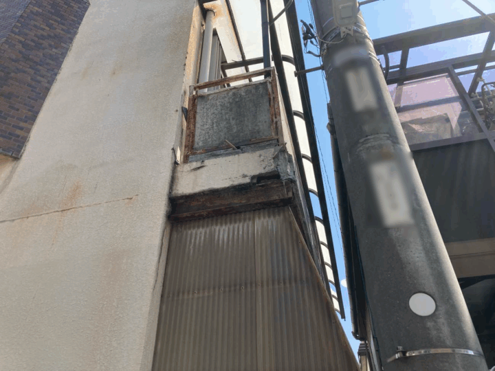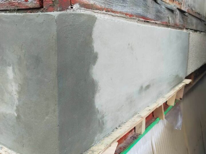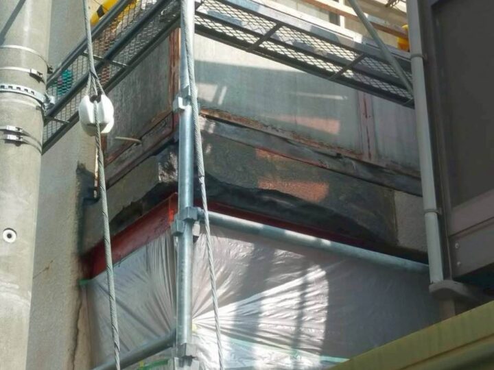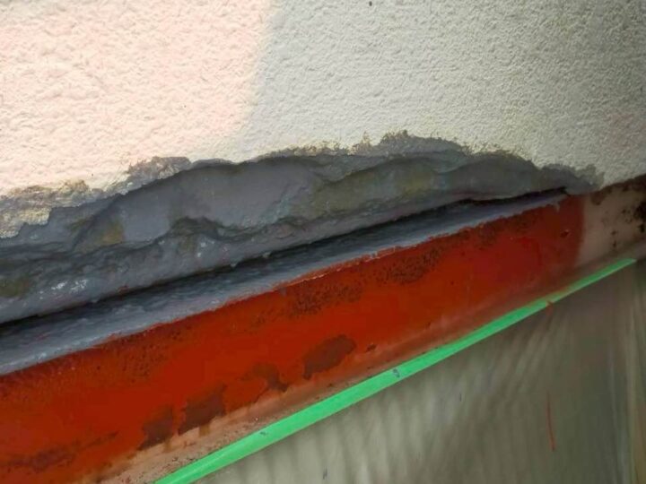 ベランダ左官壁工事~斫り・鉄部サビ止め塗布~