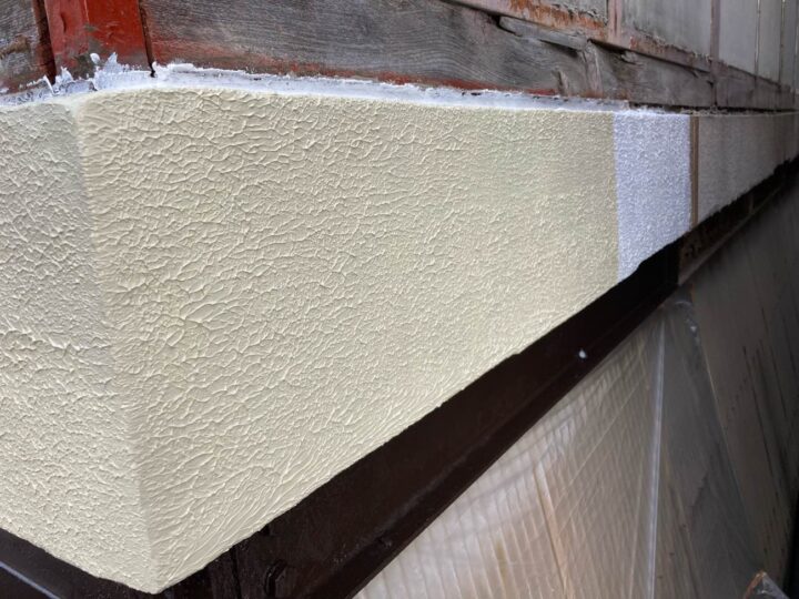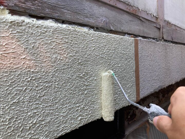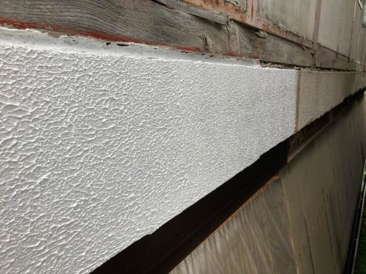 施工箇所の周りの既存の外壁となじむように塗装に柄をつけます。 -