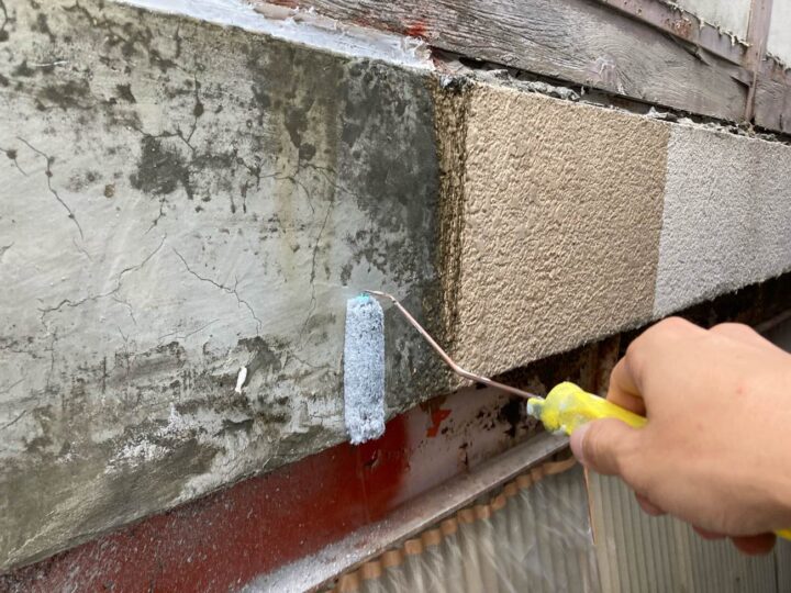 コンクリート部分に接着剤の役割となるプライマーを塗布します。 -