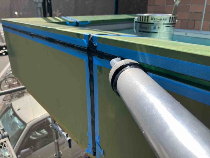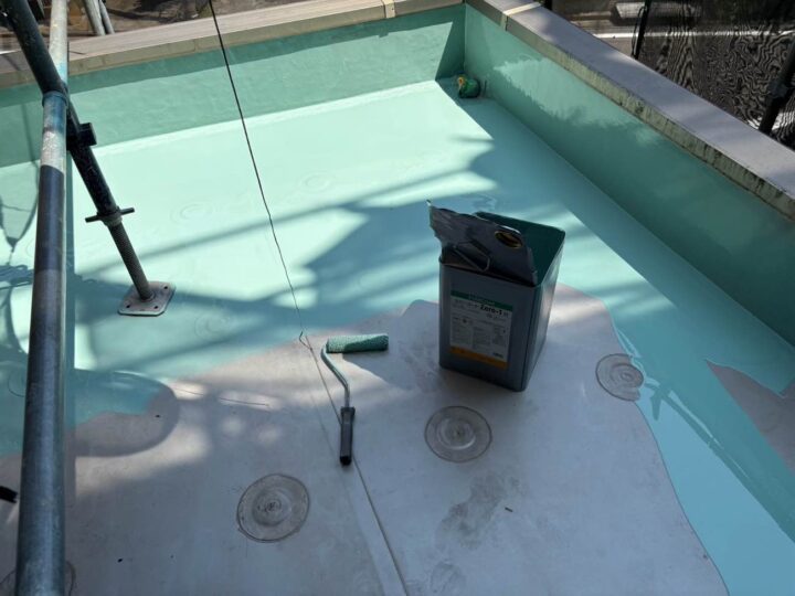 ウレタン塗膜防水2層目を塗布します。2層にすることでしっかりと膜厚を付けて防水層を作ります。 -