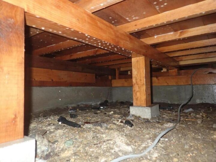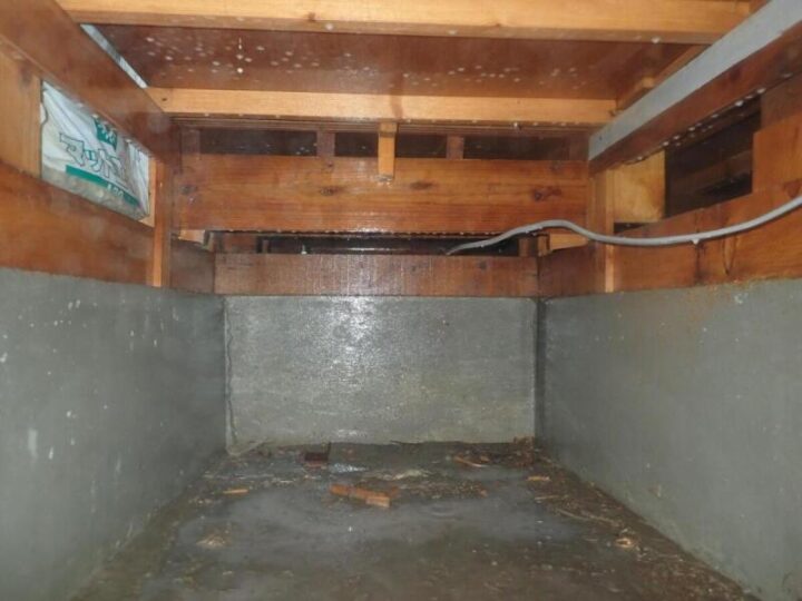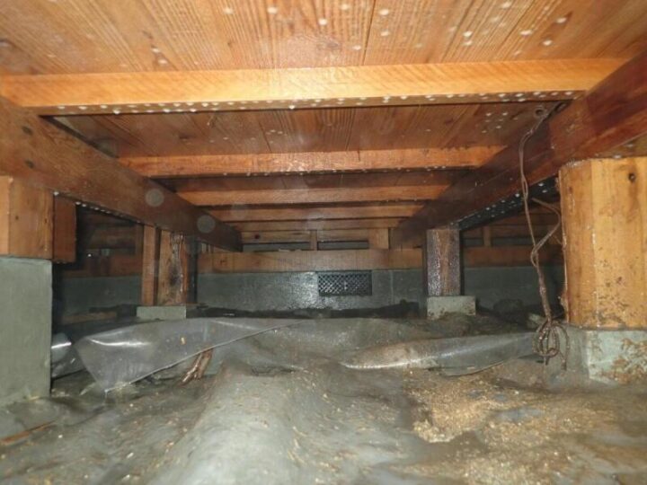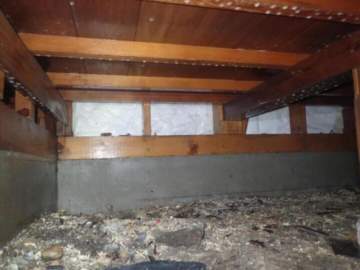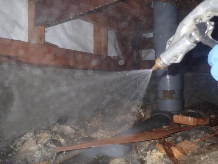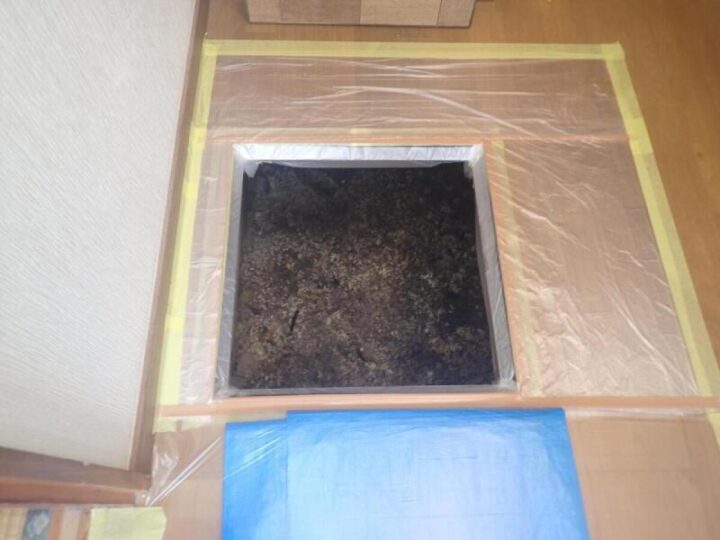 床下に入る箇所の周辺部と作業員が外へ出入りする通路までを、ビニールなどで作業中に汚れないよう厳重に養生をします。 -