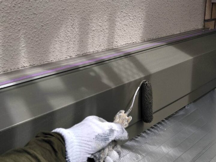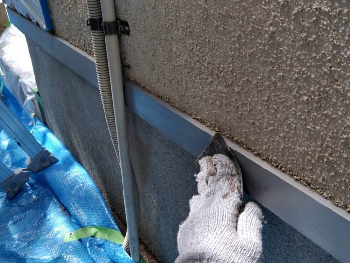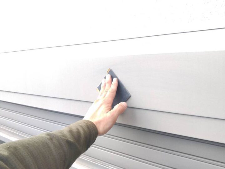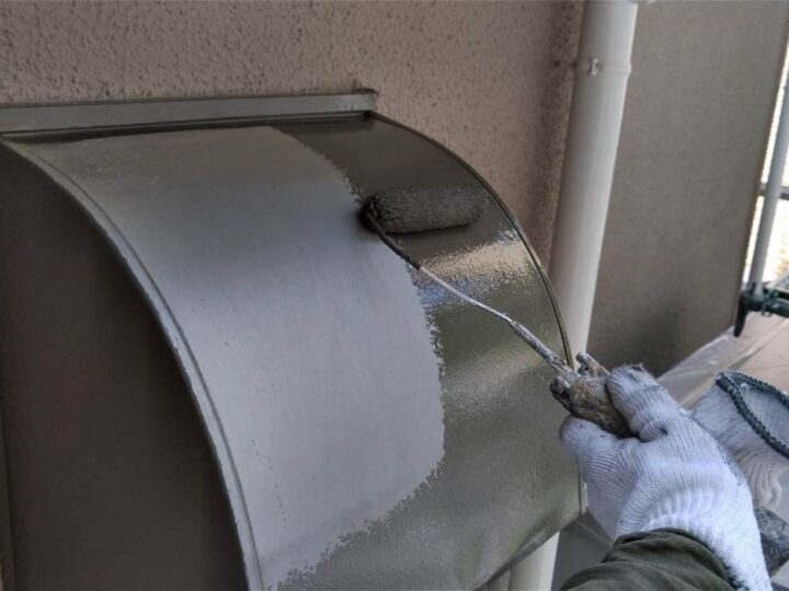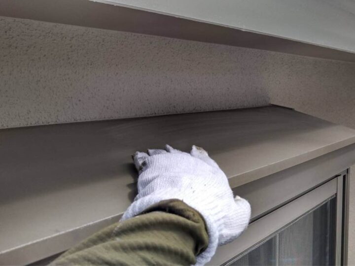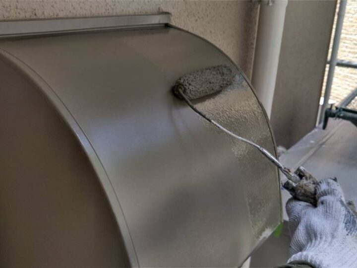 スチール製の付帯部は、塗料の密着性を高める為、ケレンという軽くキズを付ける作業が重要です。 -