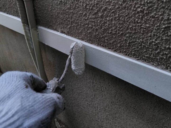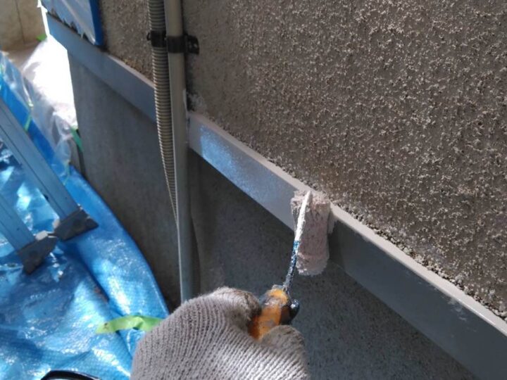 外壁塗料と同じ工程、同じ塗料で上塗り1回目を塗布しております。 -