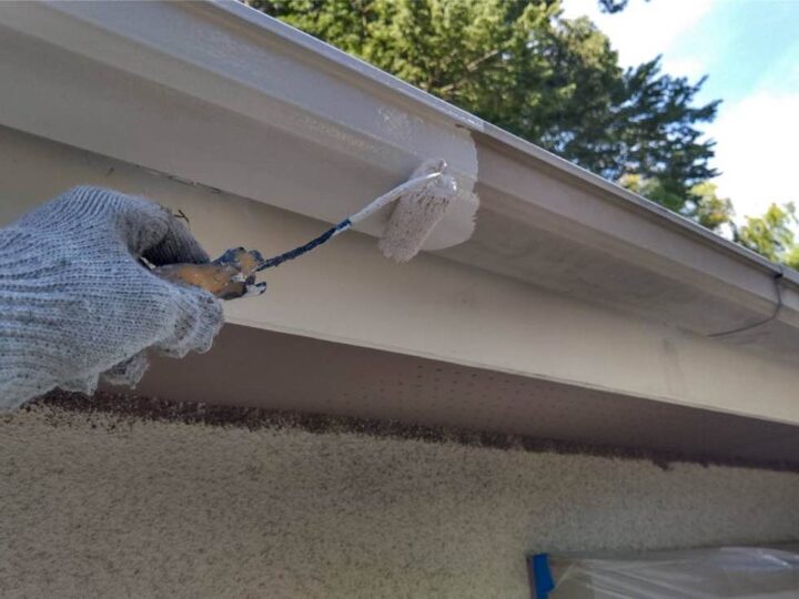 【軒天井】上塗り2回目(外壁塗料と同じ)
