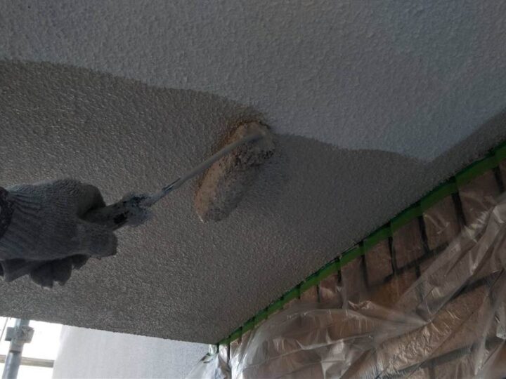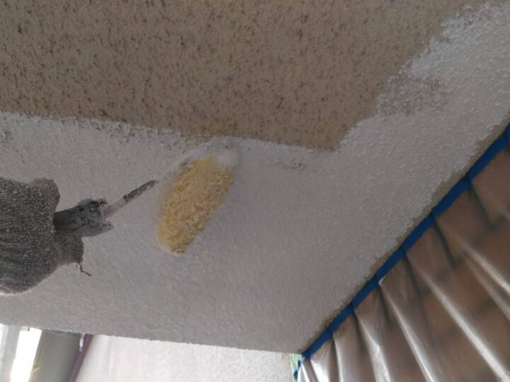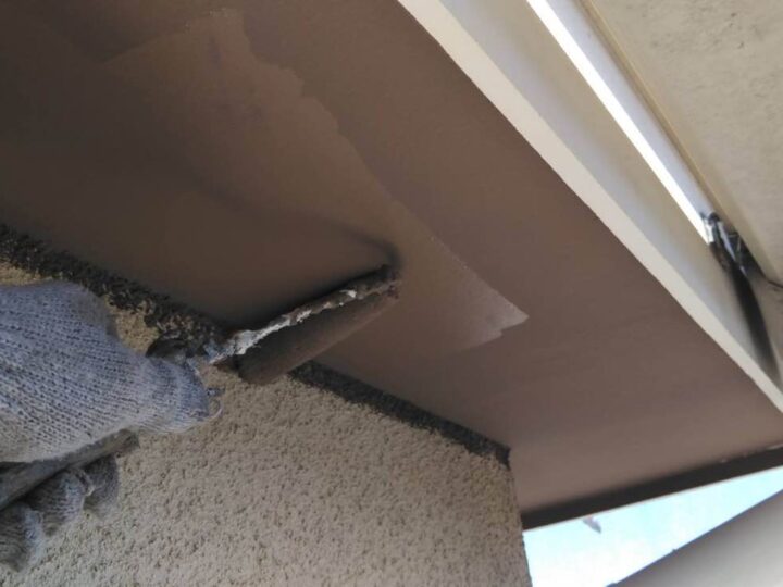 【軒天井】上塗り1回目(外壁塗料と同じ)