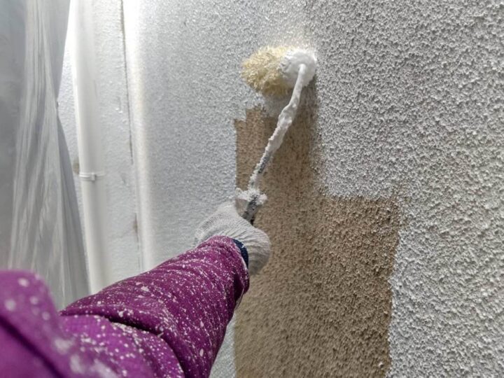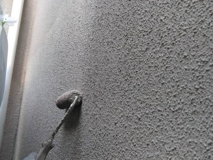 「微弾性フィラー」と呼ばれる、弾力性があり細かなひび割れなどを埋めてくれる下塗り材を塗布いたします。 -