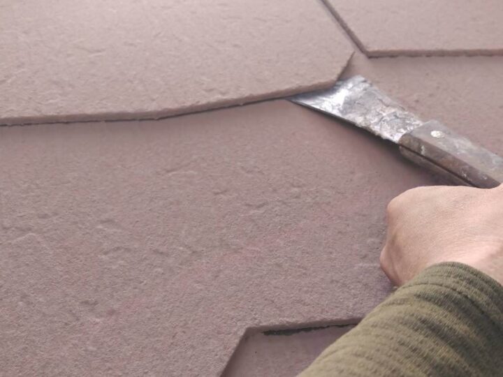 屋根材と屋根材の隙間を確保するため、「縁切り」というカッター等工具を使用して塗膜で塞がってしまった箇所を切ります。 屋根材の隙間を埋めてしまうと、狭いところに吸い上げられる「毛細管現象」という水の特性で、屋根の裏側に雨水が回り込み、雨漏りの原因となってしまいます。 -