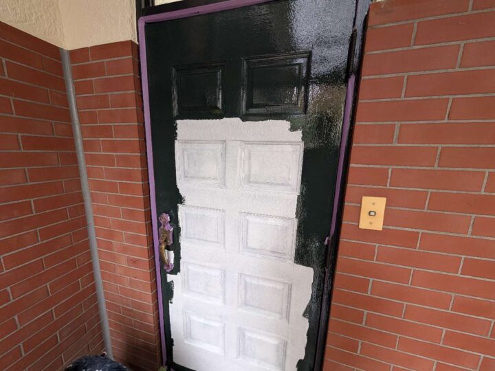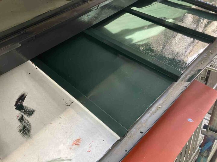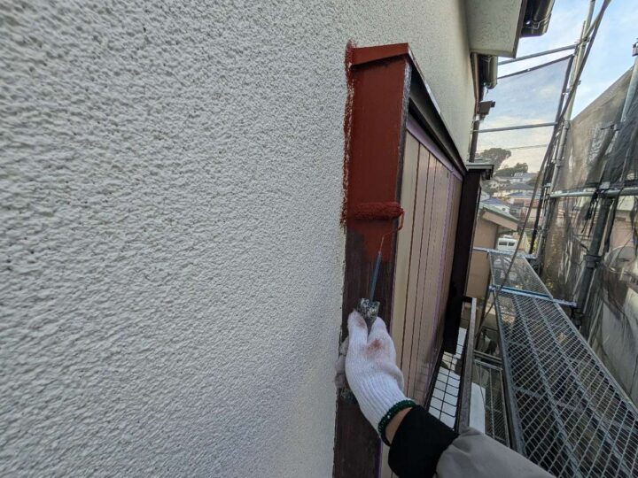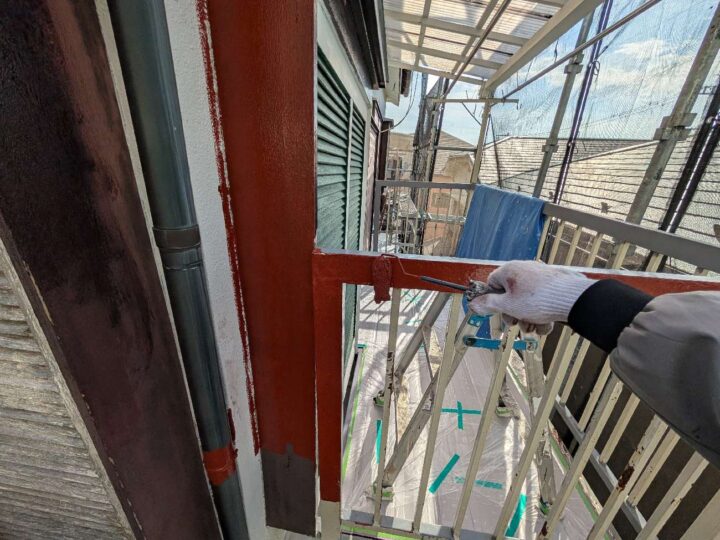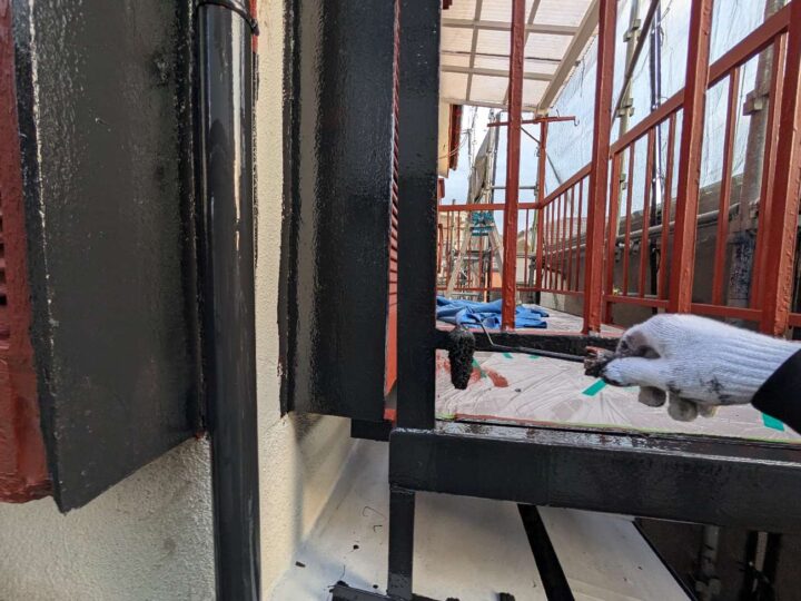 ケレン後に、鉄部用のサビ止め塗料を塗布いたします。 -