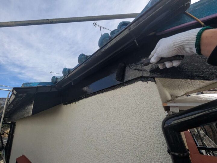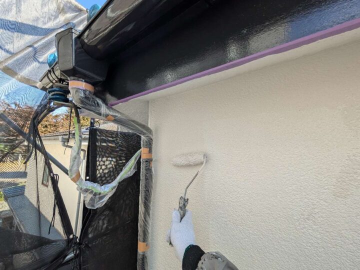 屋根の上塗り2回目の行っております。 上塗り塗料を2回塗ることにより、塗料の耐久性を発揮します。 -