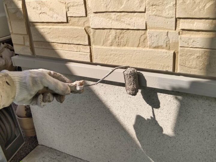 「シーラー」と呼ばれる、下地に浸透し、密着性を高める下塗り材を塗布いたします。 -