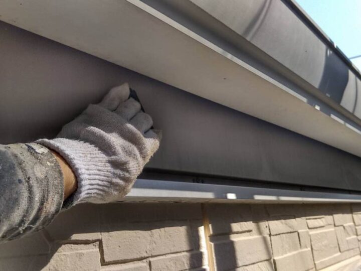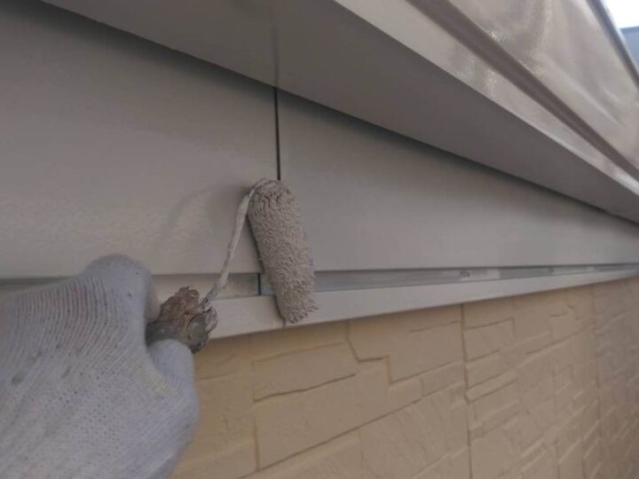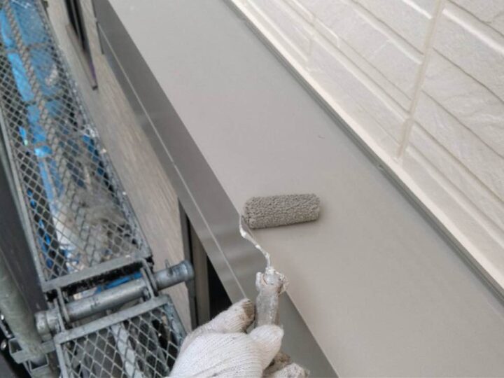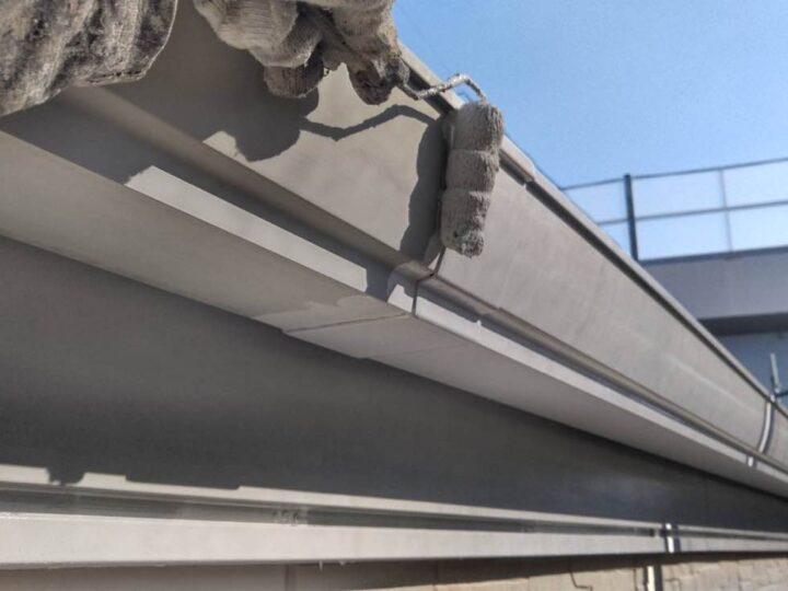 スチール製の付帯部は、塗料の密着性を高める為、ケレンという軽くキズを付ける作業が重要です。 -