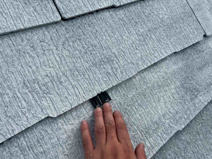 屋根材と屋根材の隙間を確保するため、「タスペーサー」という専用の部材を差し込みます。 屋根材の隙間を埋めてしまうと、狭いところに吸い上げられる「毛細管現象」という水の特性で、屋根の裏側に雨水が回り込み、雨漏りの原因となってしまいます。 -