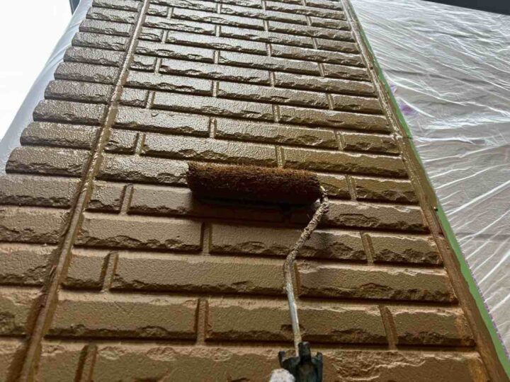 上塗り塗料で2回目を塗布いたします。 -