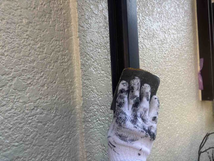 窓やアルミサッシなど、塗装しない箇所に塗料が付着しないよう、養生していきます。 -