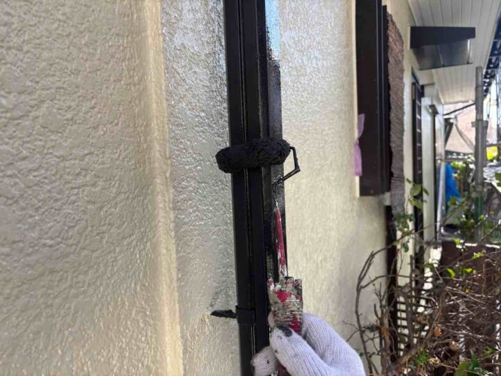 外壁塗料と同じ工程、同じ塗料で上塗り1回目を塗布しております。 -
