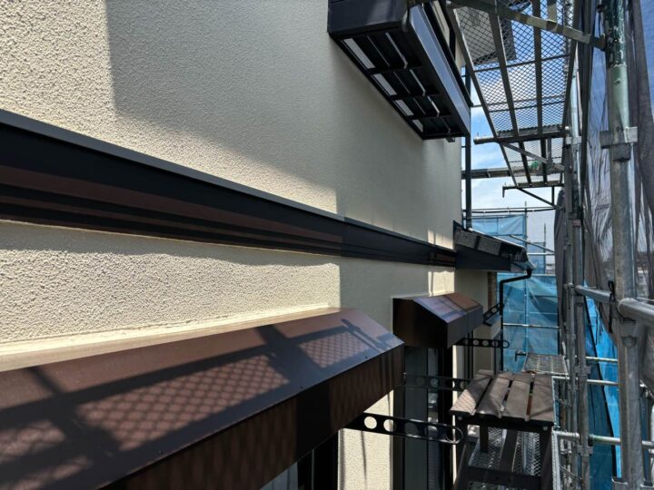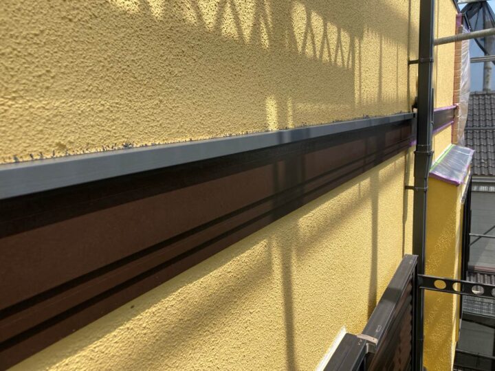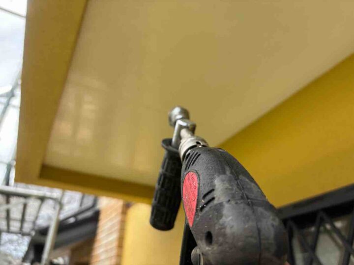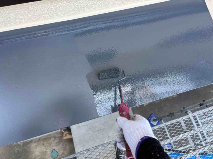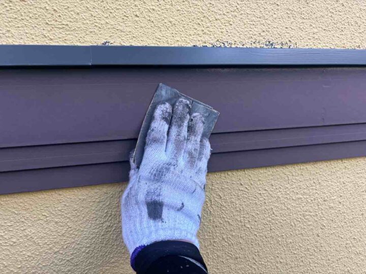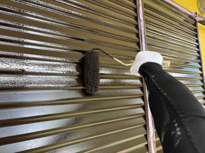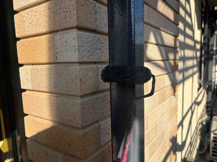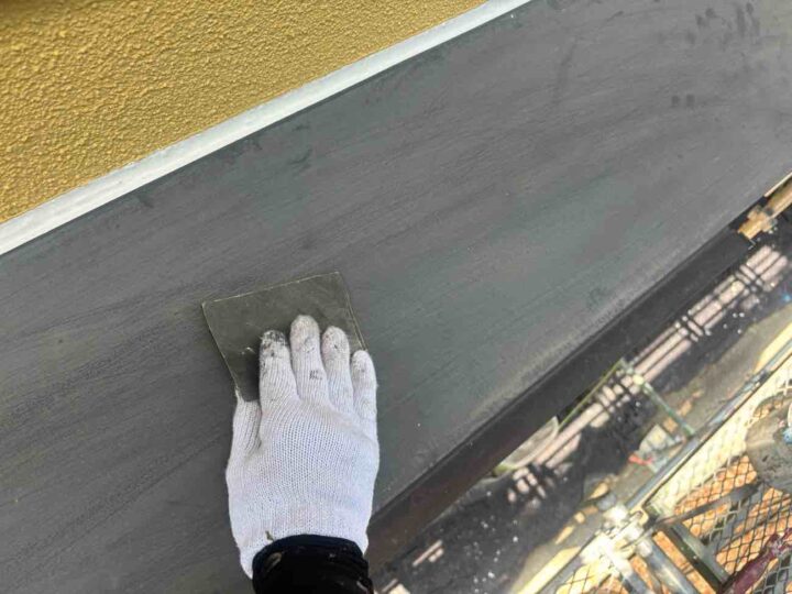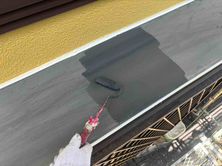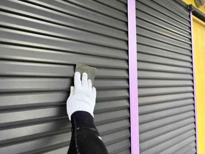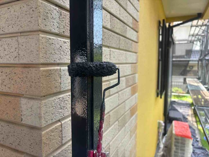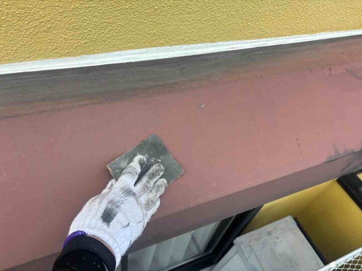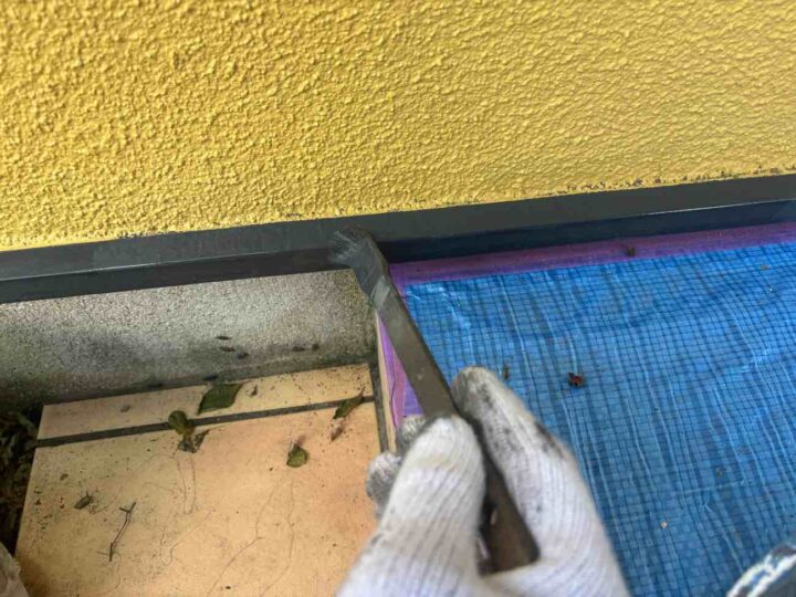 スチール製の付帯部は、塗料の密着性を高める為、ケレンという軽くキズを付ける作業が重要です。 -