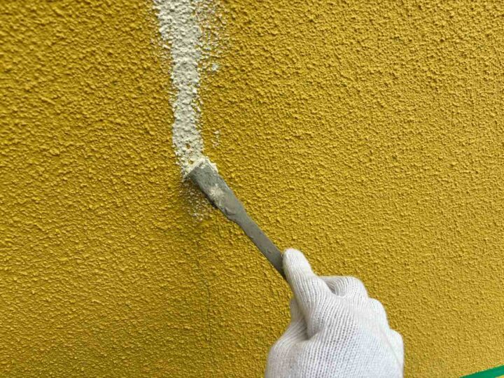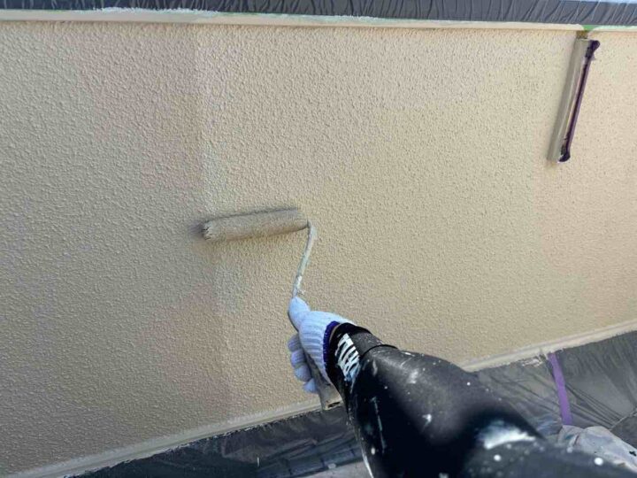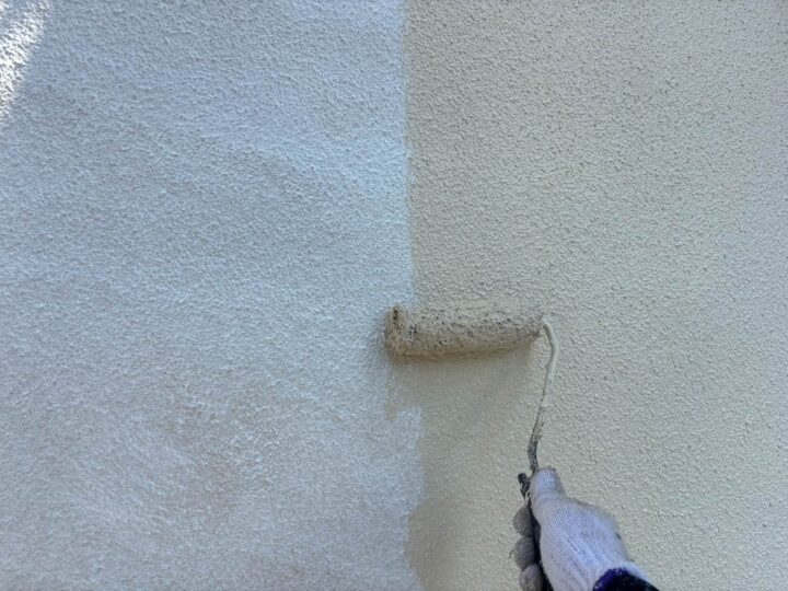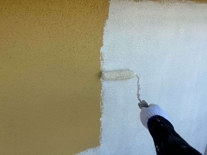 「微弾性フィラー」と呼ばれる、弾力性があり細かなひび割れなどを埋めてくれる下塗り材を塗布いたします。 -