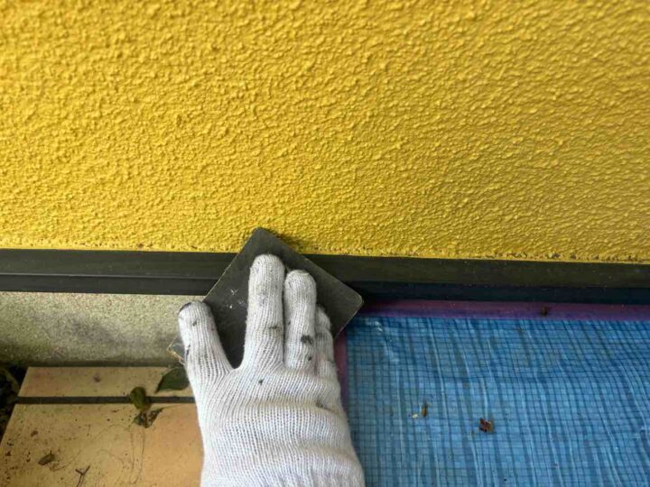 圧着させて密着性を高めるとともに、余分なシーリング材を取り除き仕上げていきます。 -
