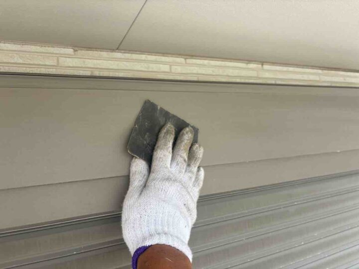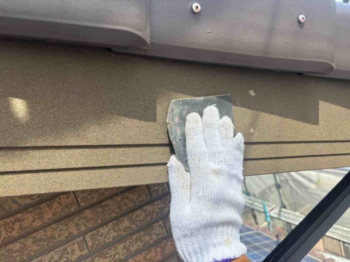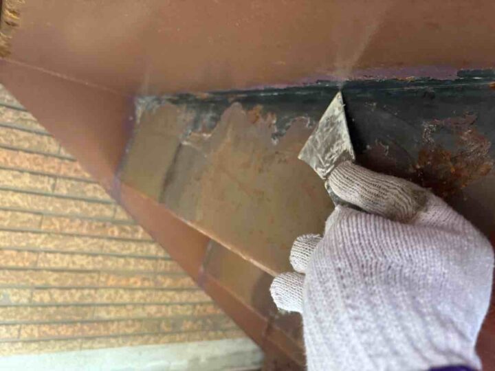 スチール製の付帯部は、塗料の密着性を高める為、ケレンという軽くキズを付ける作業が重要です。 -