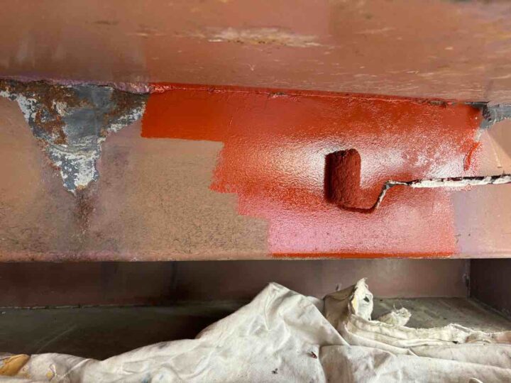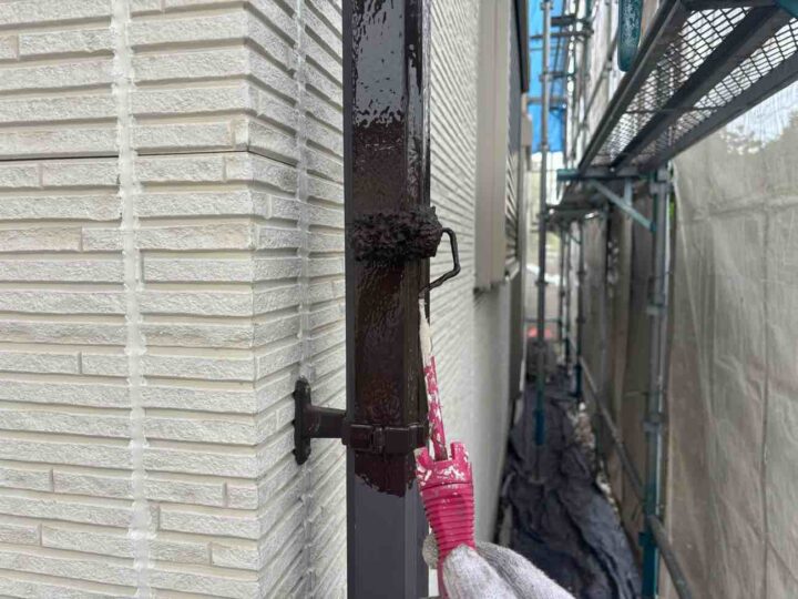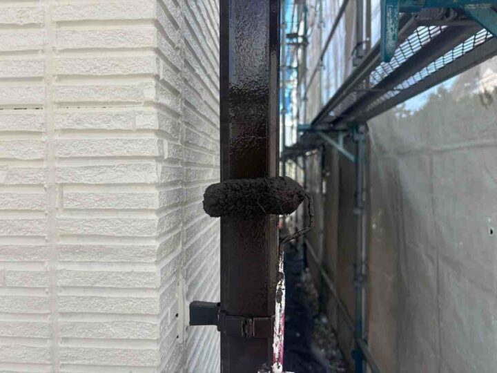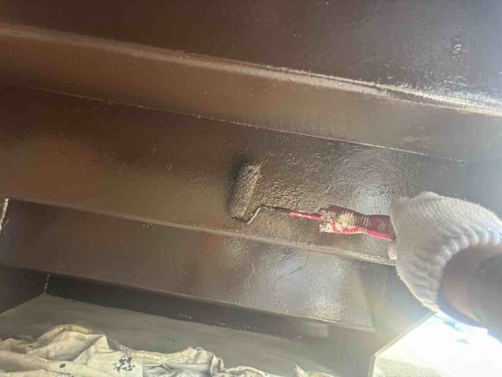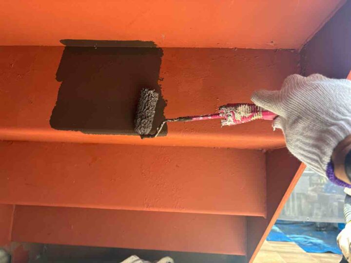ケレン後に、鉄部用のサビ止め塗料を塗布いたします。 -