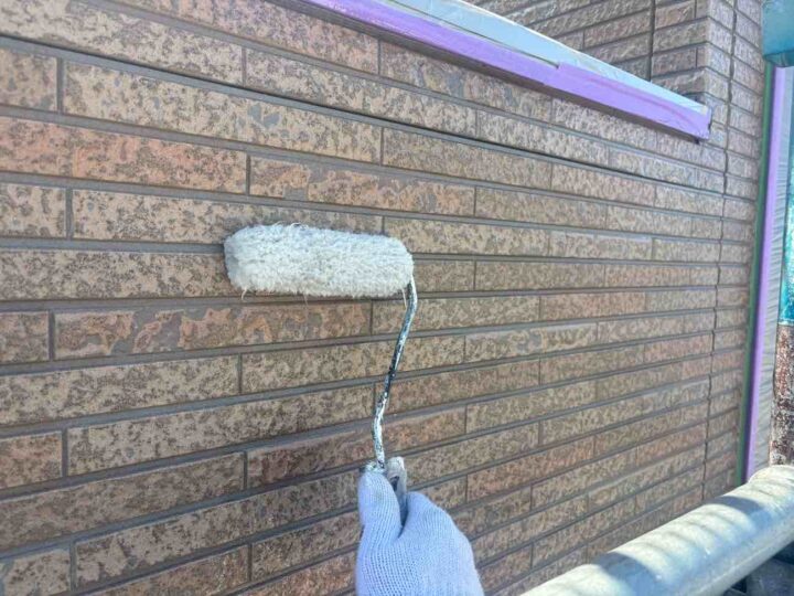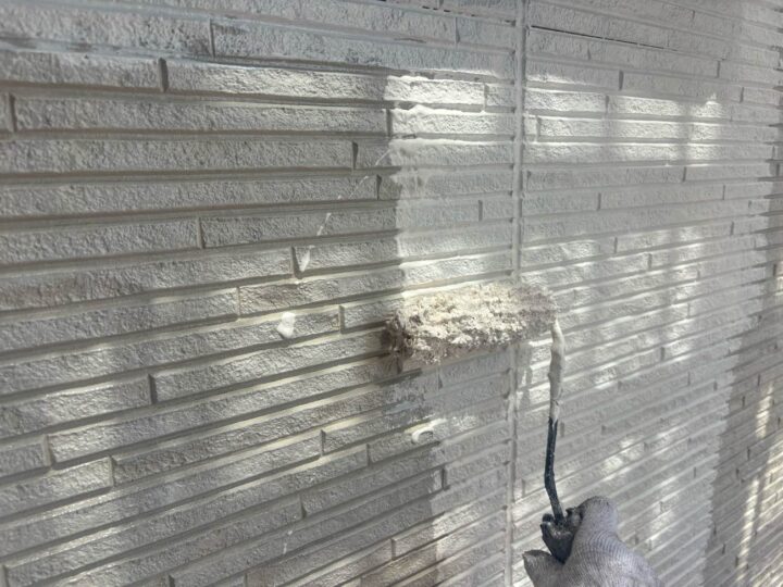 「シーラー」と呼ばれる、下地に浸透し、密着性を高める下塗り材を塗布いたします。 -