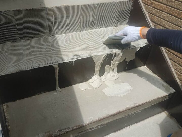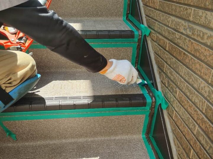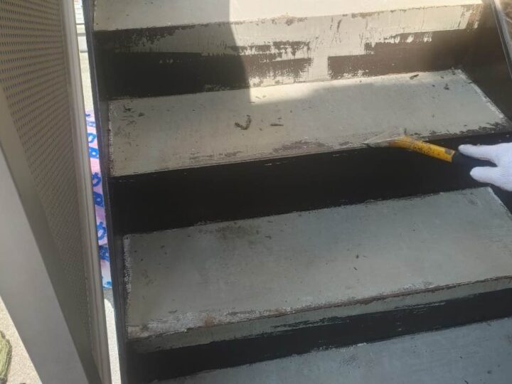 【鉄骨階段】上塗り1回目(シリコン塗料)