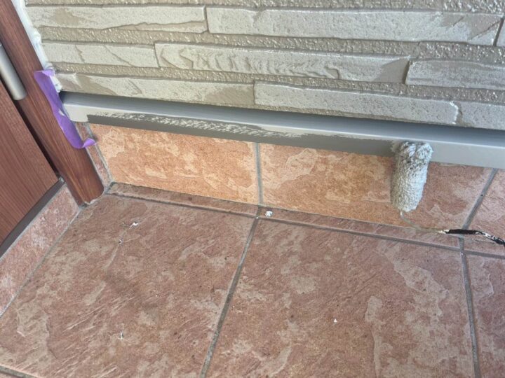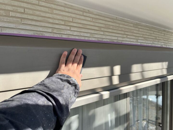 スチール製の付帯部は、塗料の密着性を高める為、ケレンという軽くキズを付ける作業が重要です。 -