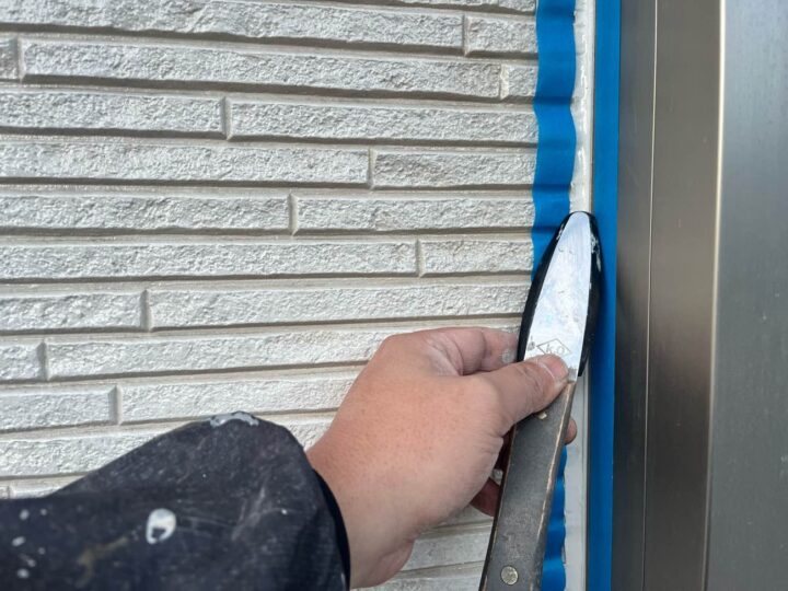 圧着させて密着性を高めるとともに、余分なシーリング材を取り除き仕上げていきます。 -
