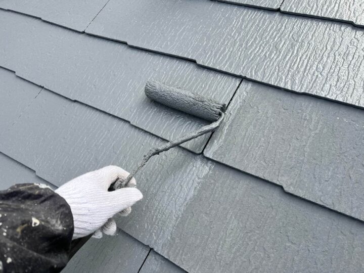 屋根の上塗り2回目の行っております。 上塗り塗料を2回塗ることにより、塗料の耐久性を発揮します。 -