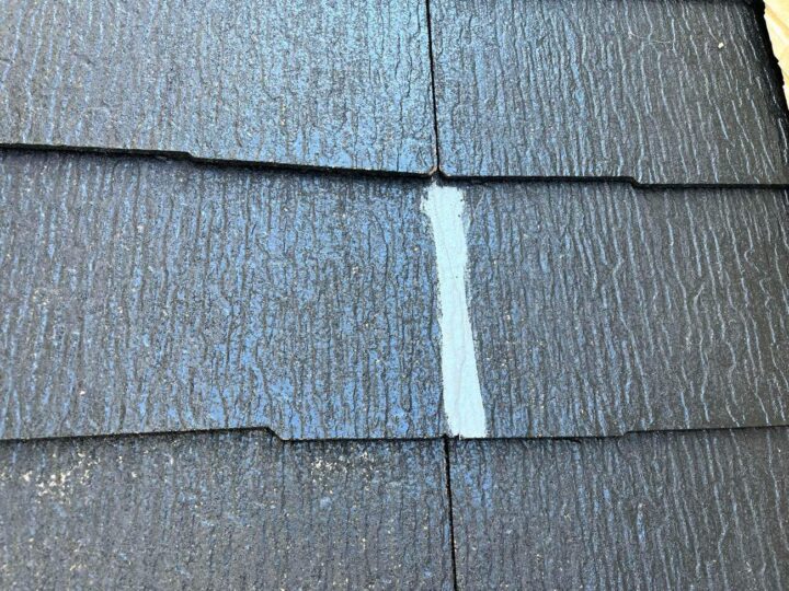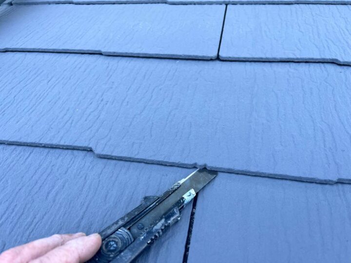 屋根材と屋根材の隙間を確保するため、「縁切り」というカッター等工具を使用して塗膜で塞がってしまった箇所を切ります。 屋根材の隙間を埋めてしまうと、狭いところに吸い上げられる「毛細管現象」という水の特性で、屋根の裏側に雨水が回り込み、雨漏りの原因となってしまいます。 -