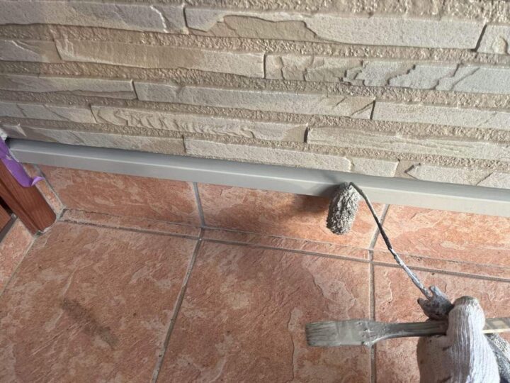 外壁をKFスーパーコートウレアのクリア専用下塗りを塗布しております。