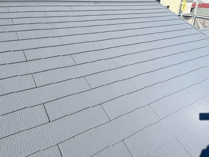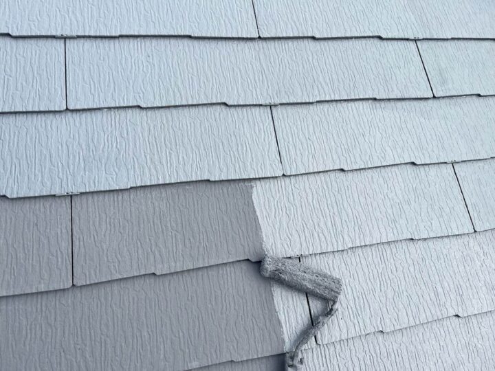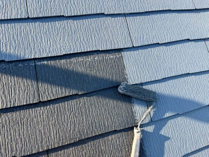 屋根の上塗り2回目の行っております。 上塗り塗料を2回塗ることにより、塗料の耐久性を発揮します。 -