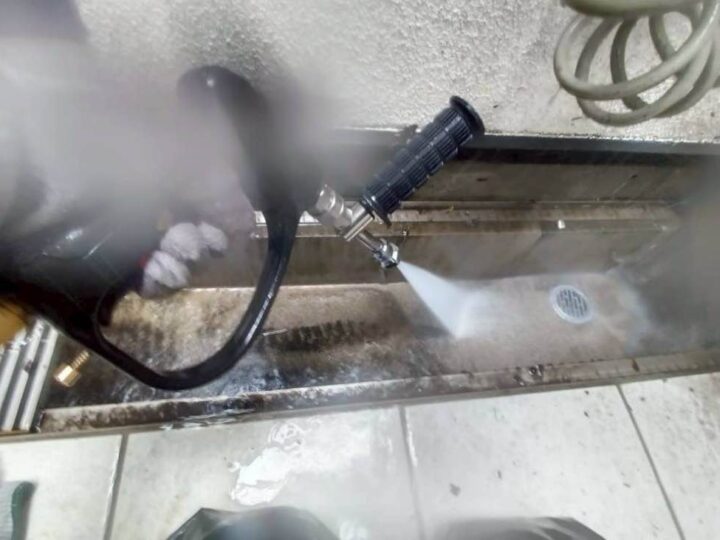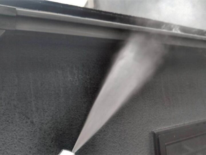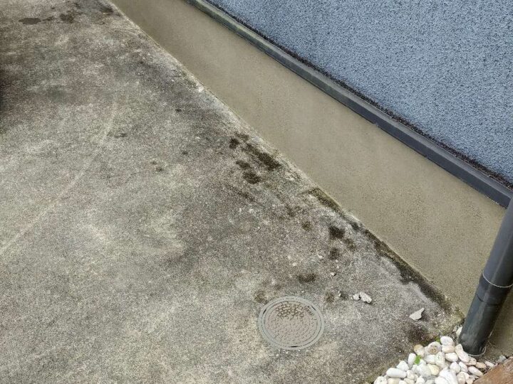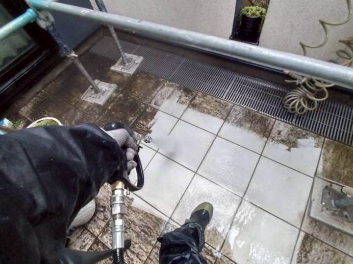 塗料の密着性を高める為、外壁に付いた長年の汚れやホコリなどを業務用の高圧洗浄機にて洗浄いたします。 -