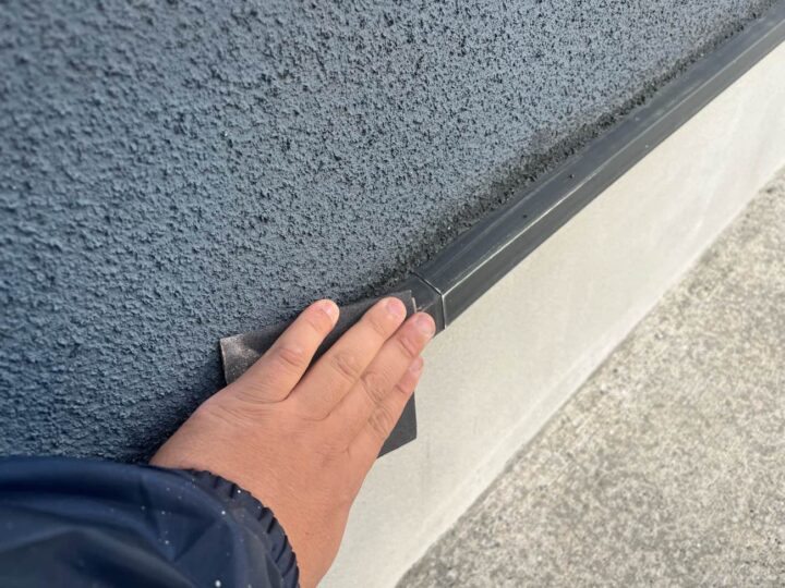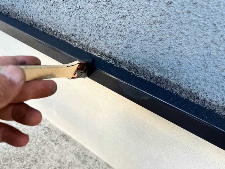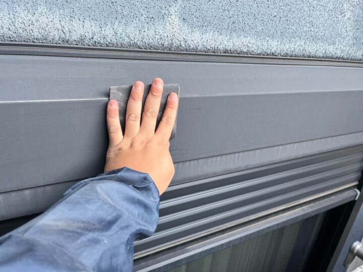 スチール製の付帯部は、塗料の密着性を高める為、ケレンという軽くキズを付ける作業が重要です。 -