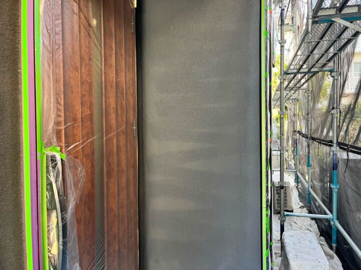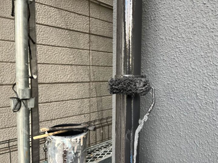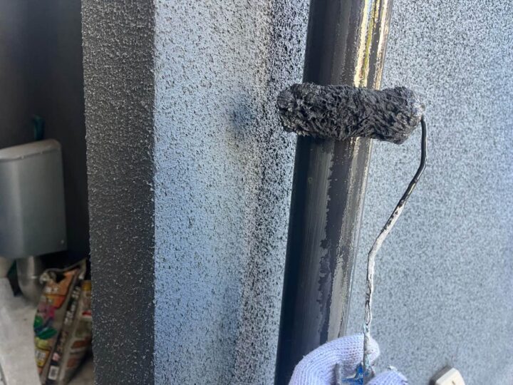 外壁塗料と同じ工程、同じ塗料で上塗り1回目を塗布しております。 -