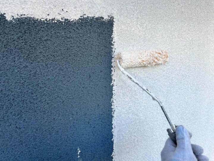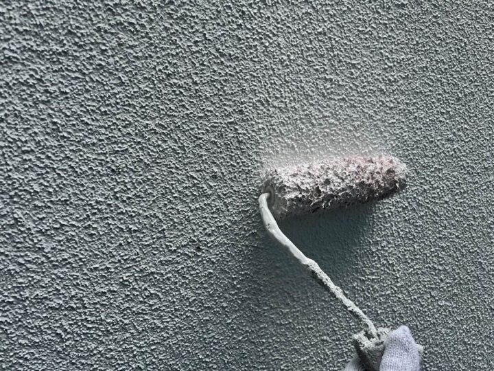 「微弾性フィラー」と呼ばれる、弾力性があり細かなひび割れなどを埋めてくれる下塗り材を塗布いたします。 -
