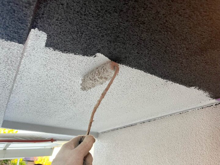【軒天井】上塗り2回目(外壁塗料と同じ)