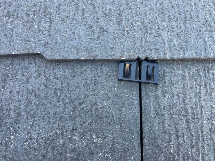 屋根材と屋根材の隙間を確保するため、「タスペーサー」という専用の部材を差し込みます。 屋根材の隙間を埋めてしまうと、狭いところに吸い上げられる「毛細管現象」という水の特性で、屋根の裏側に雨水が回り込み、雨漏りの原因となってしまいます。 -