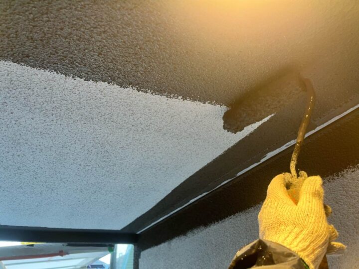 【軒天井】上塗り1回目(外壁塗料と同じ)