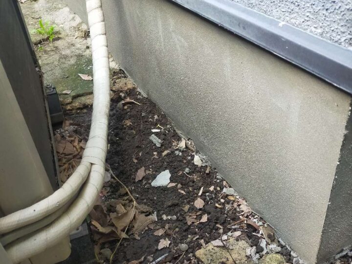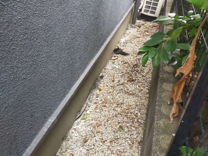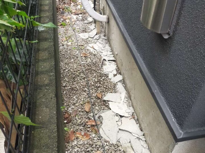 基礎部左官工事 ~既存化粧モルタル撤去~