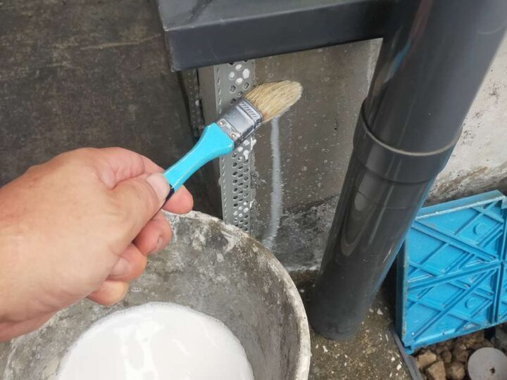 下地と新しく塗るモルタルの密着性を高めるために、ハイフレックスを塗布します。