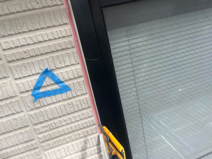 カッターなど専用工具を使用し既存のシーリング材を撤去しています。 -