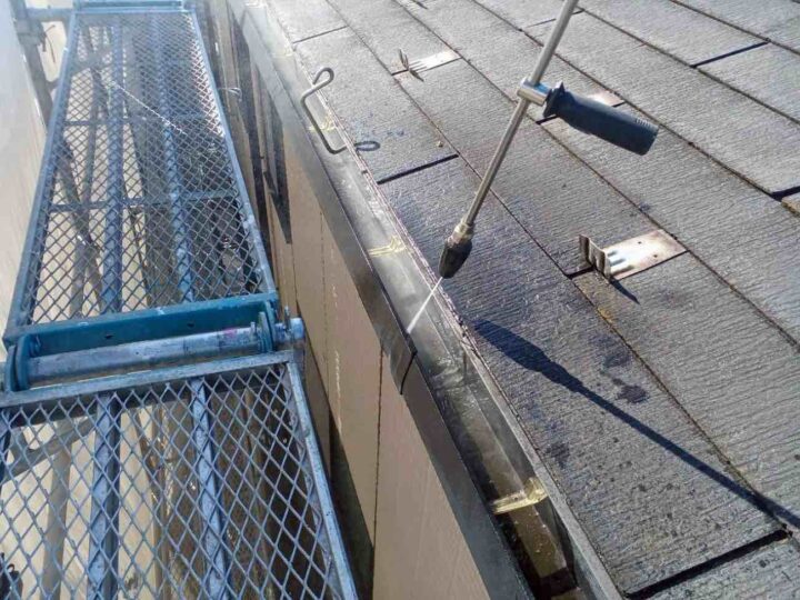 屋根材と屋根材の隙間を確保するため、「縁切り」というカッター等工具を使用して塗膜で塞がってしまった箇所を切ります。 屋根材の隙間を埋めてしまうと、狭いところに吸い上げられる「毛細管現象」という水の特性で、屋根の裏側に雨水が回り込み、雨漏りの原因となってしまいます。 -