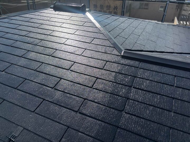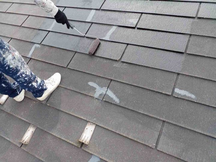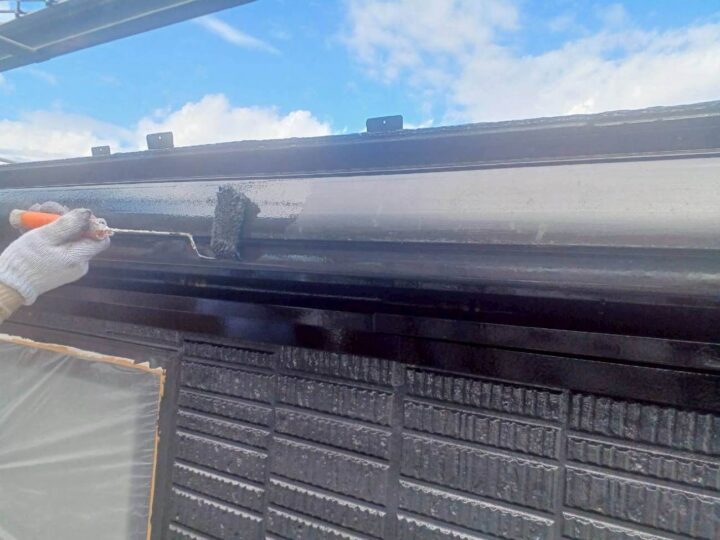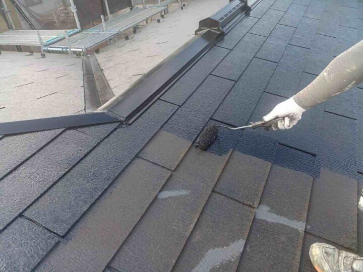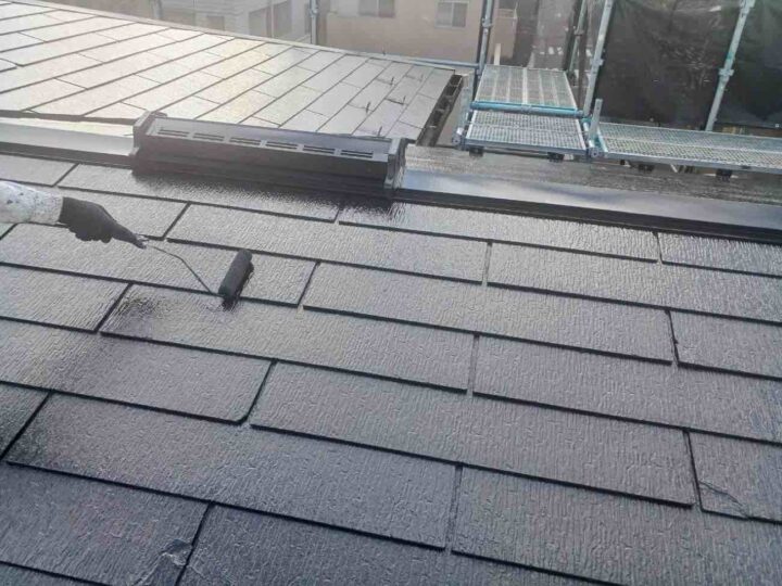 屋根の上塗り2回目の行っております。 上塗り塗料を2回塗ることにより、塗料の耐久性を発揮します。 -