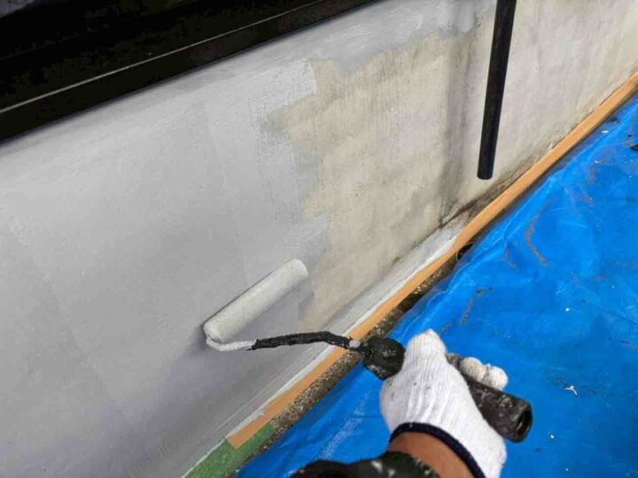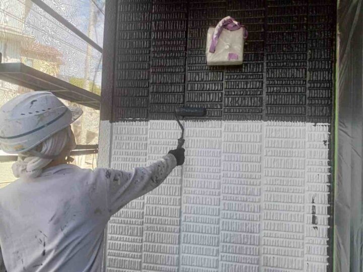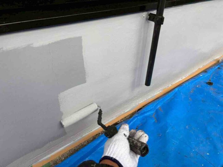 塗料の密着性を高める為と、上塗り塗料の吸い込み止めの為、「シーラー」と呼ばれる下塗り材を塗布しております。 -