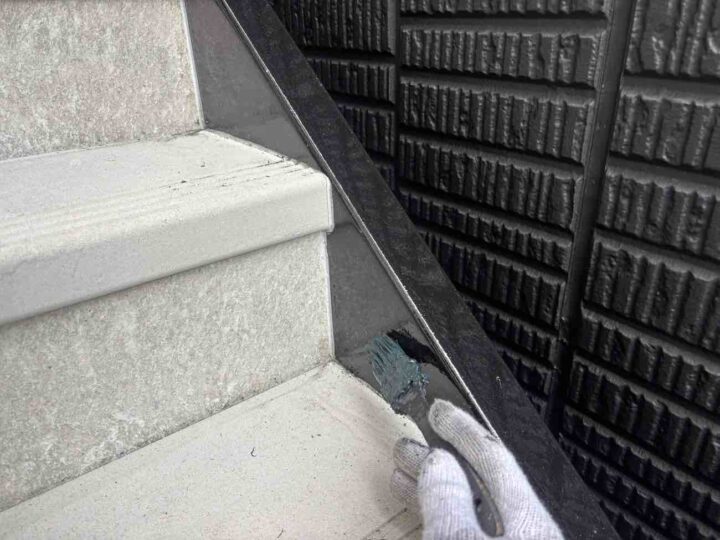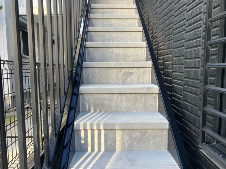 【鉄骨階段】上塗り1回目(シリコン塗料)