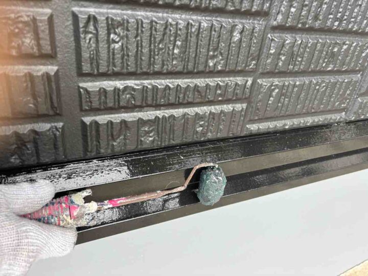 スチール製の付帯部は、塗料の密着性を高める為、ケレンという軽くキズを付ける作業が重要です。 -